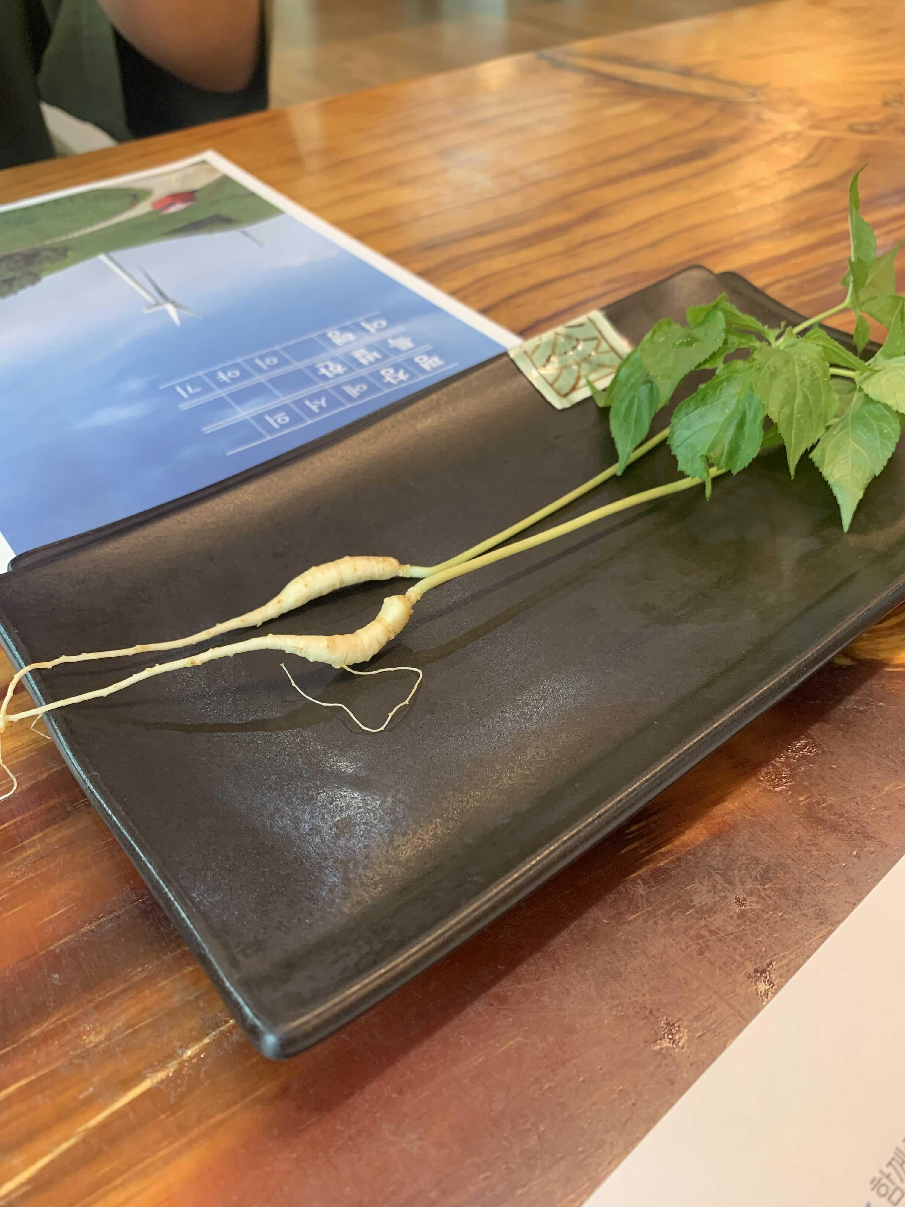 주문 후 첫번째 에파타이저로 삼이 나와서 씁쓰름한 삼을 씹어 먹고 있을때 쯤 반찬이 하나씩 나오기 시작합니다.