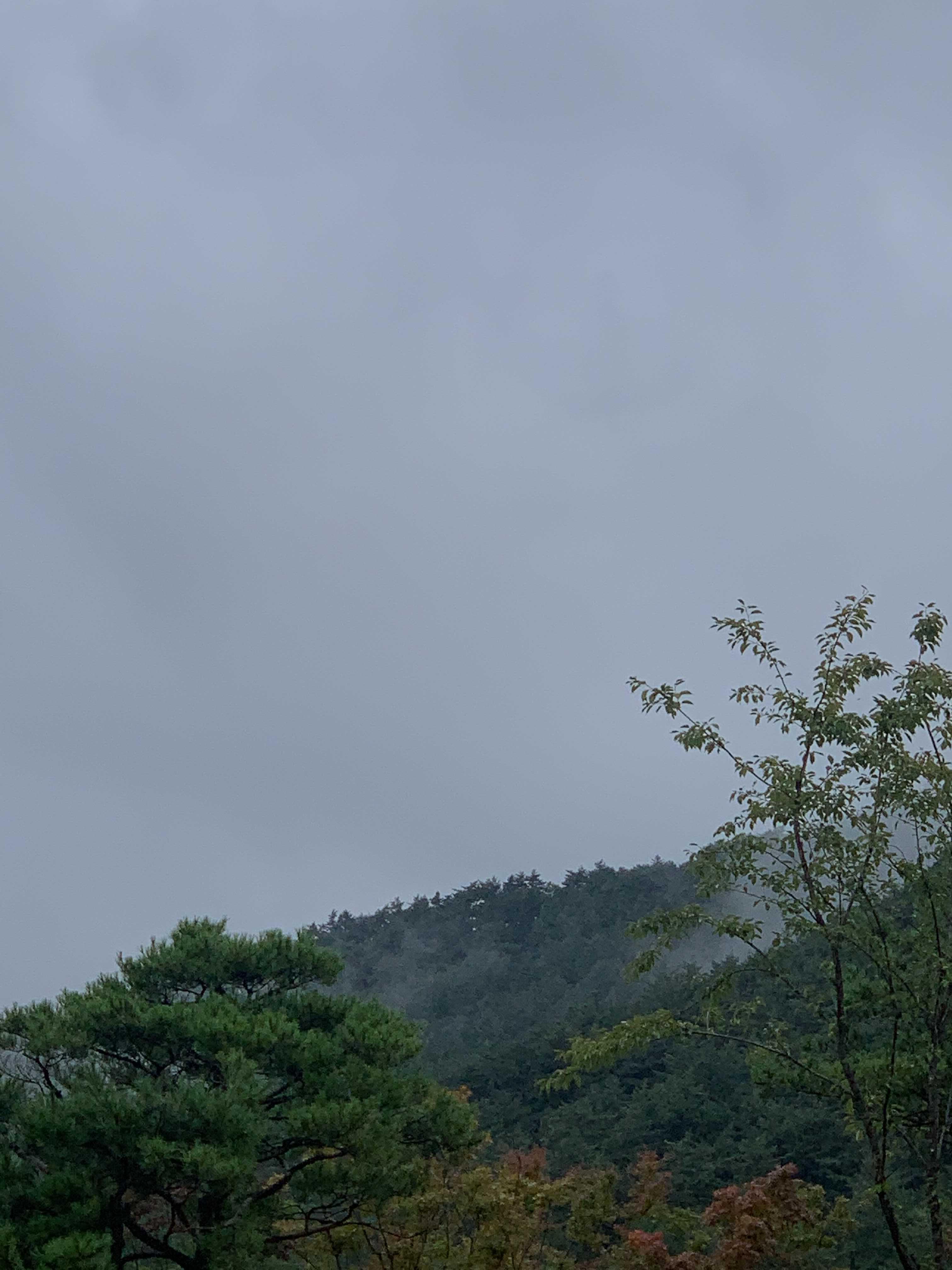 배불리 먹고 나왔더니 비도 잠깐 멈춰 눈앞에 보이는 풍경이예요. 산이 둘러쌓여서 공기는 정말 좋드라구요.