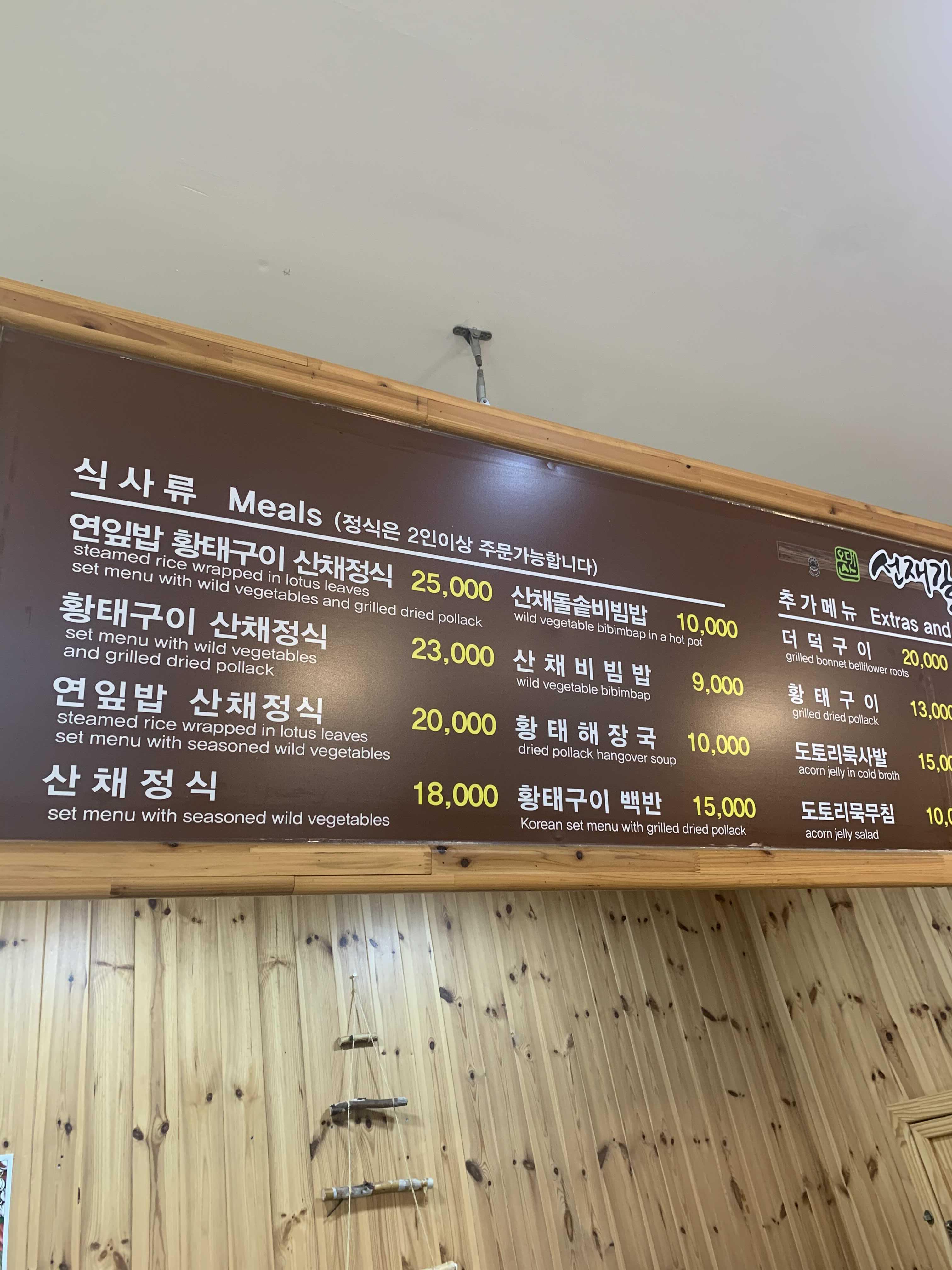 저희는 황태구이 산채정식을 주문 하였습니다.(메뉴판은 가장 마지막에 있음)